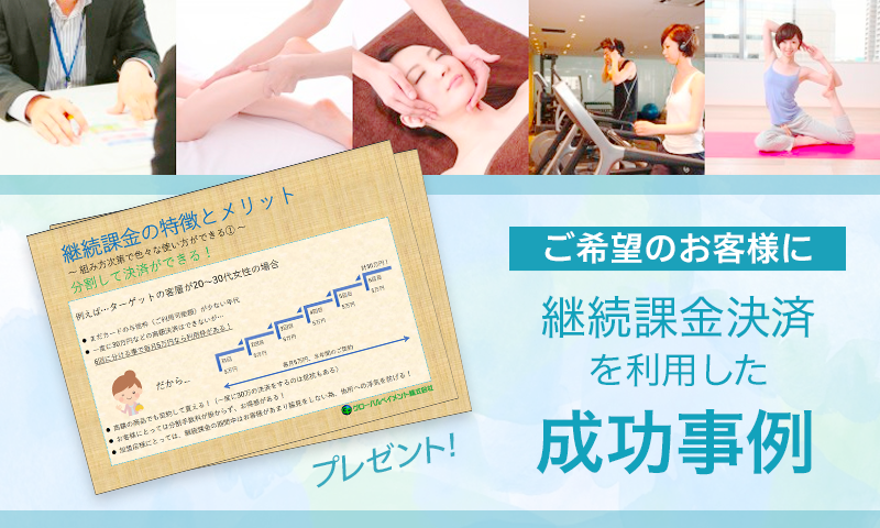 ご希望のお客様に継続課金決済を利用した成功事例をお渡ししております!